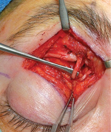 The less common surgeries we perform are at the temporal trigger site that addresses the zygomaticotemporal nerve and the auriculotemporal nerve. Usually, there is a superficial temporal artery at this site that is pulsating on the nerve, which is subsequently ligated.