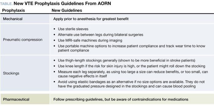 | Table. New VTE Prophylaxis Guidelines From AORN | |