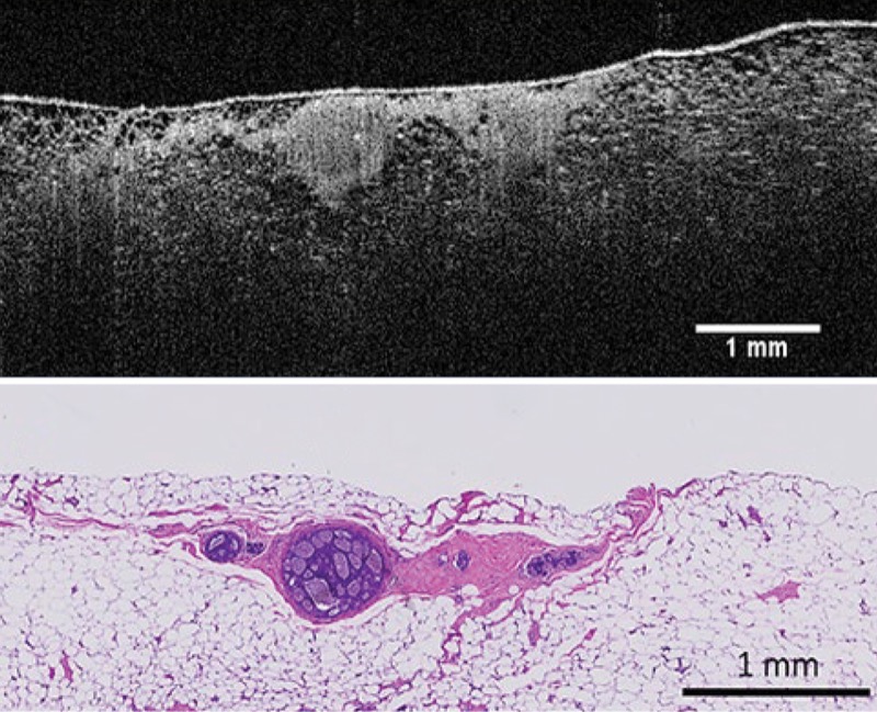The technology uses AI to highlight what the surgeons need to examine and interpret, as well as what they will need to do to remove additional tissue. “The OCT will pick up invasive disease, and it will pick up ductal carcinoma in situ [DCIS]—it doesn’t need microcalcifications in the DCIS,” he said.