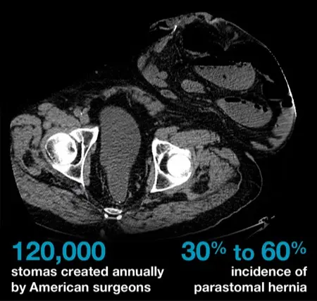 Surgeons struggle with parastomal hernias because they start with a loss. “We make a stoma; we make a hernia. That’s what I tell my patients, and when we start with a hernia, I can’t make it go away unless I can reverse it, so we’re kind of in a losing game.”