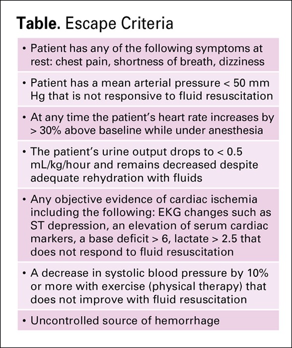 “That was a very important caveat, particularly for anesthesia,” Mullis explained. “An example would be a patient under anesthesia with a mean arterial pressure less than 50 mm Hg and not responsive to fluid resuscitation, or one with evidence of intraoperative cardiac ischemia with EKG changes or ST depression.”