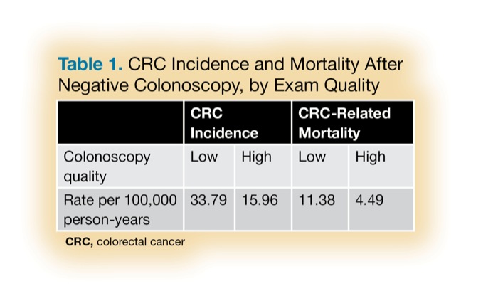 | Table 1. CRC Incidence and Mortality After Negative Colonoscopy, by Exam Quality | ||||